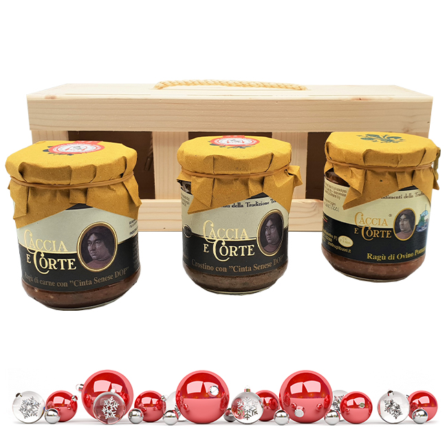 Box created to accompany your holidays with Tuscan delights. All enclosed in a delightful wooden case.